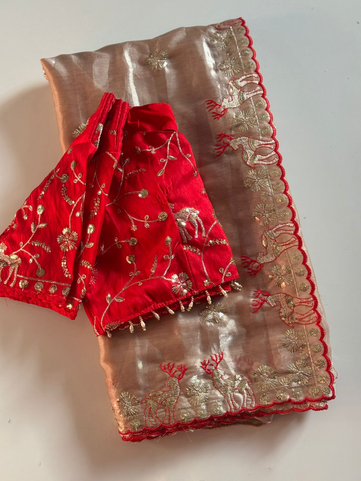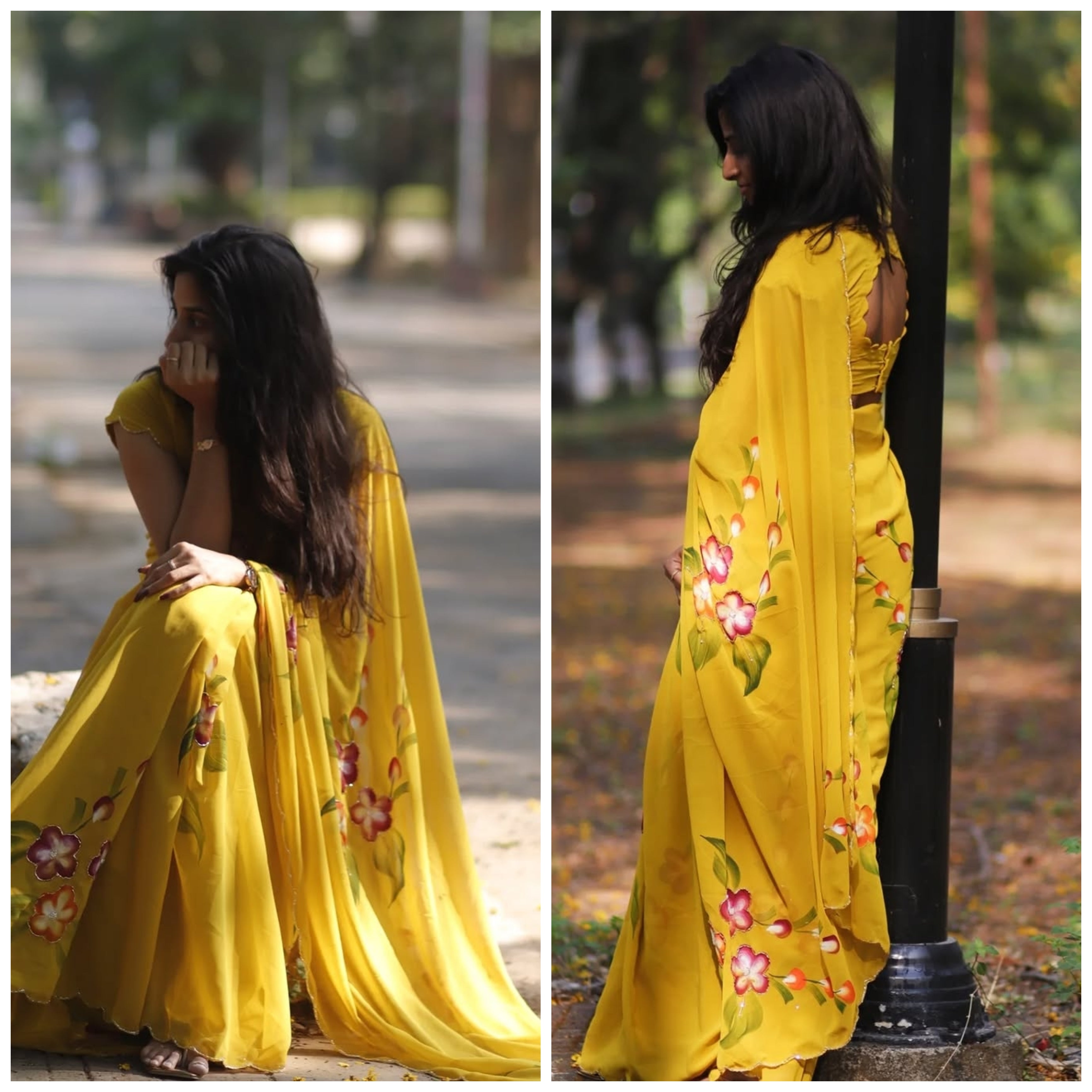 Drape yourself in elegance inspired by the cosmos. This exquisite saree is...