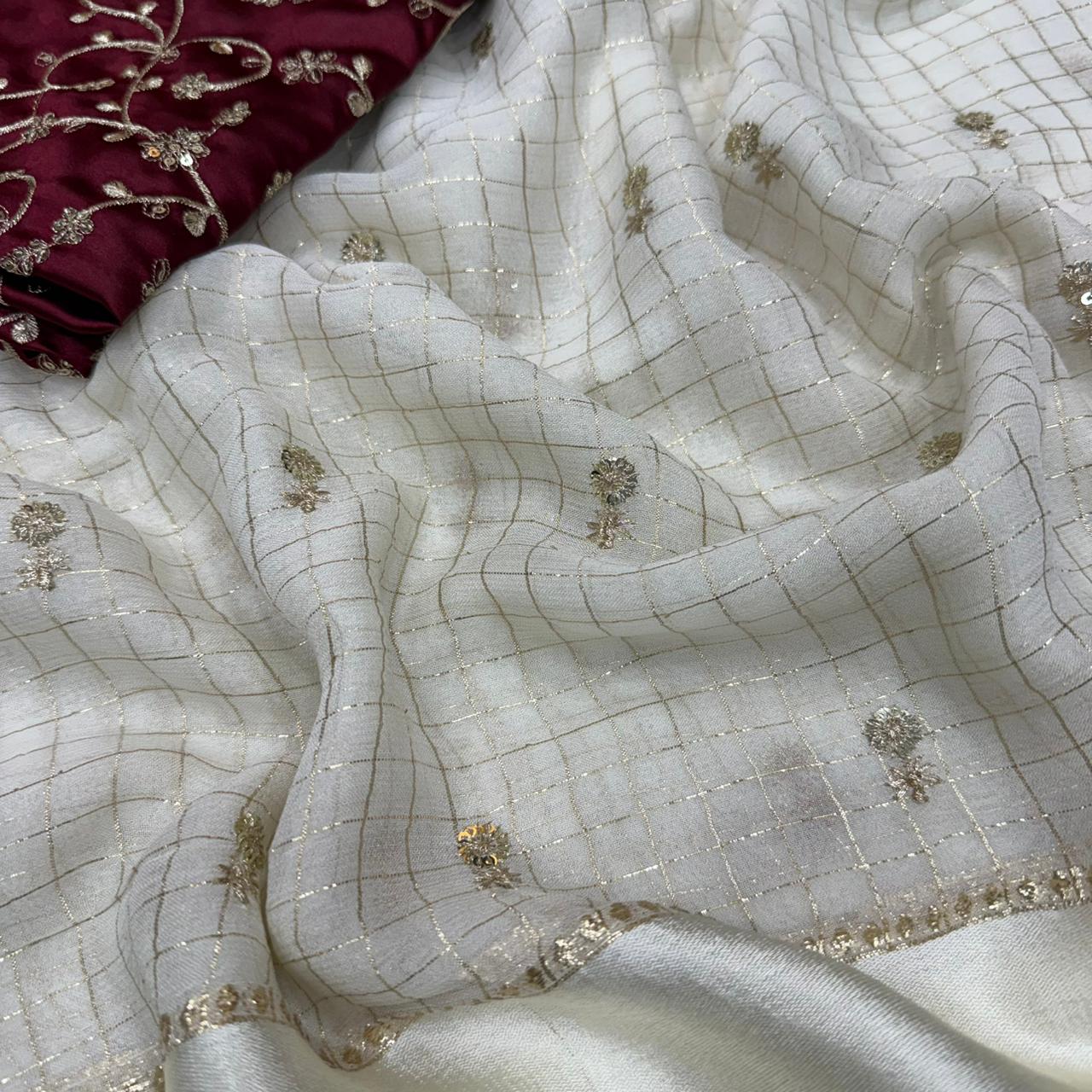 Launch Grand party wear saree in original viscos material On pure viscos sarees in velvet shine adorned with sequence work Saree comes with 5.5 mtr & all over seqwance butti work