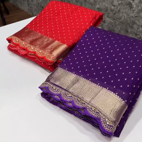 Fabric - Khadi Georgette with beautiful gold zari weaving comes with rich weaving pallu having trending embroidery work lace border