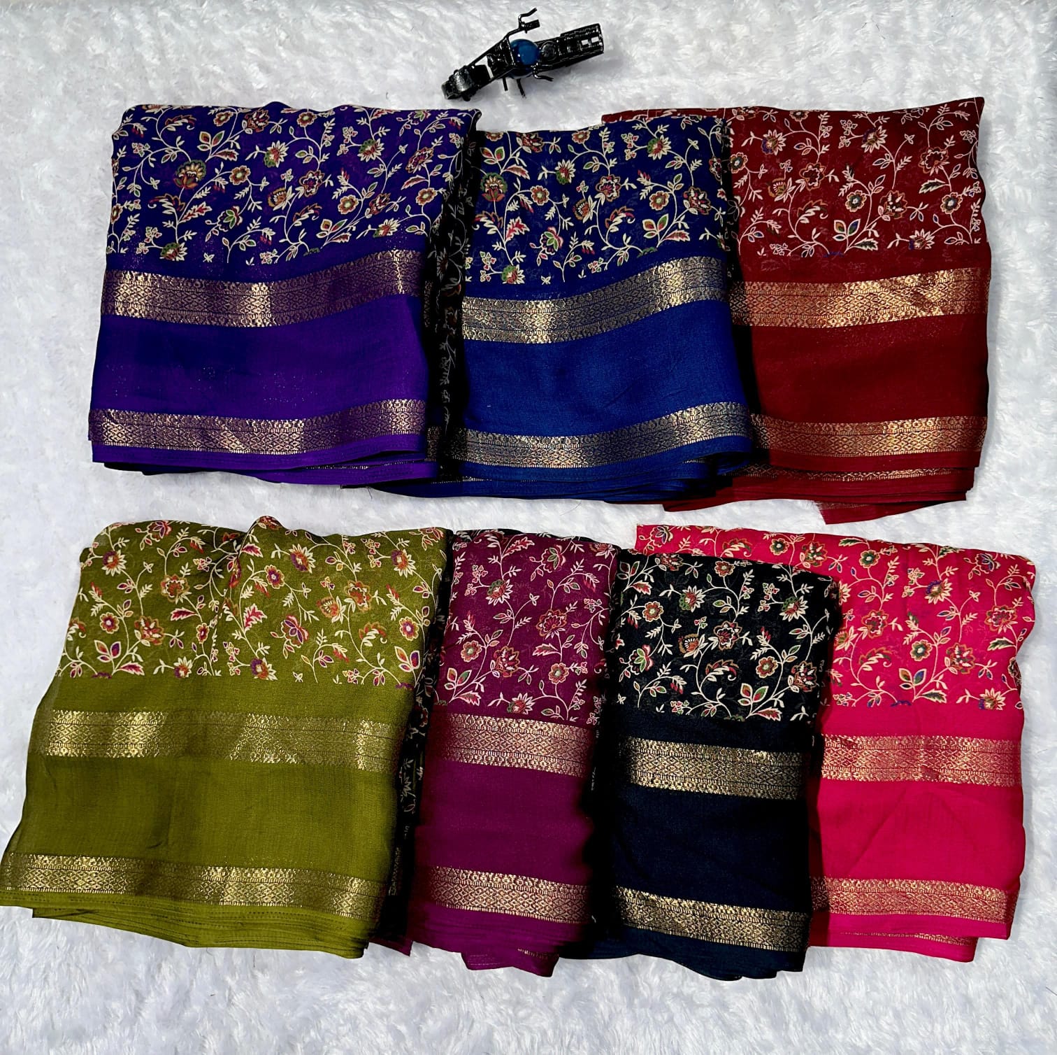 🌷super premium georgette sarees.. UNIFORM design . Full washable