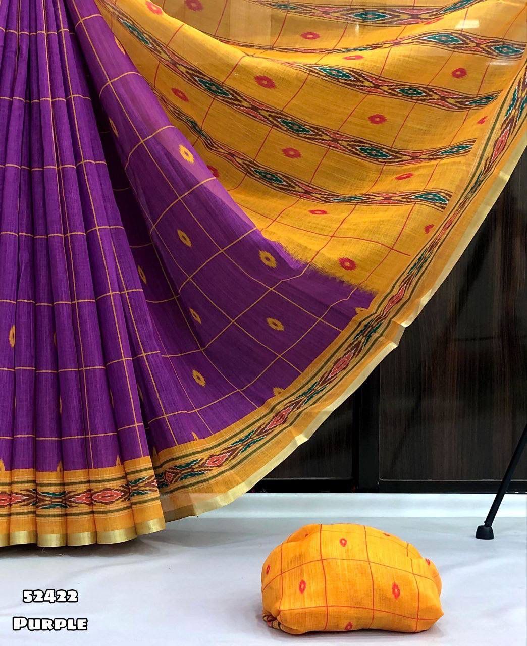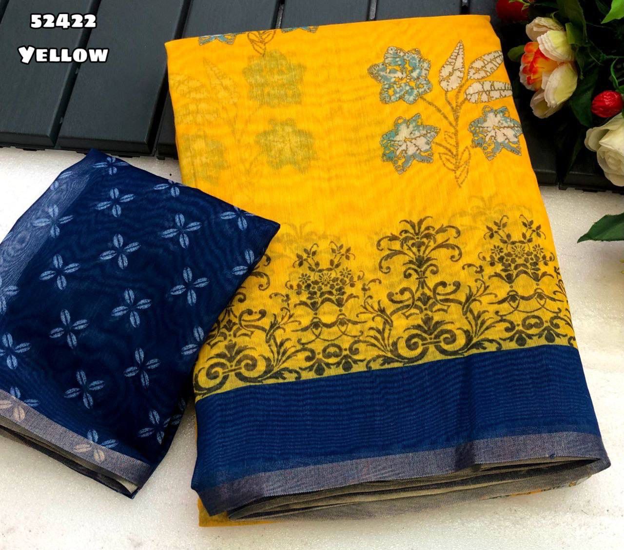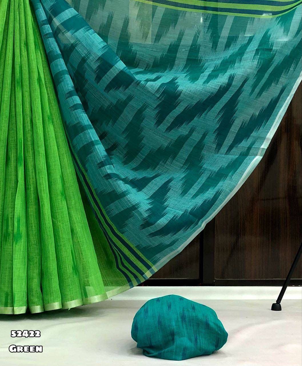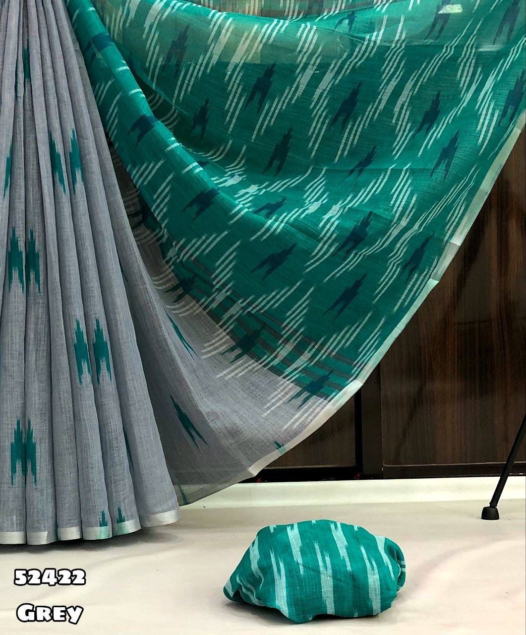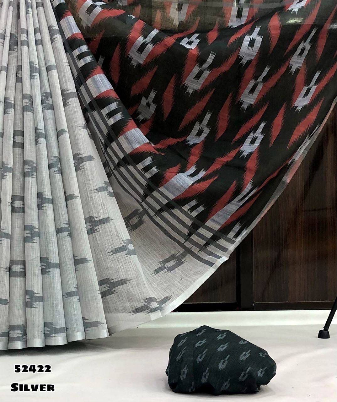 Soft lenin ikkat digital print comes with silver zari weaving border