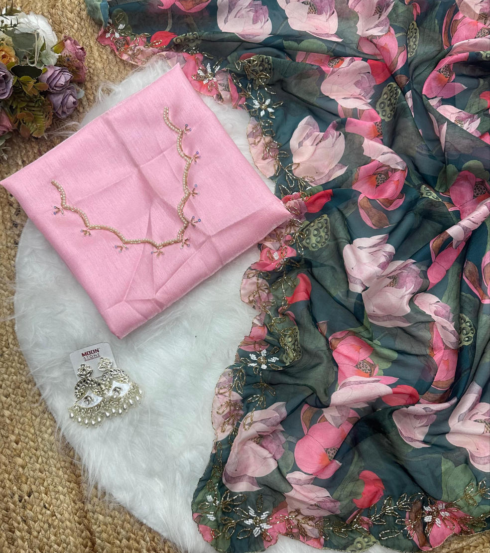 Stay beautiful with our new soft Tebi silk digital printed saree collection with beautiful val moti handwork border and satin silk blouse with handwork nack ……