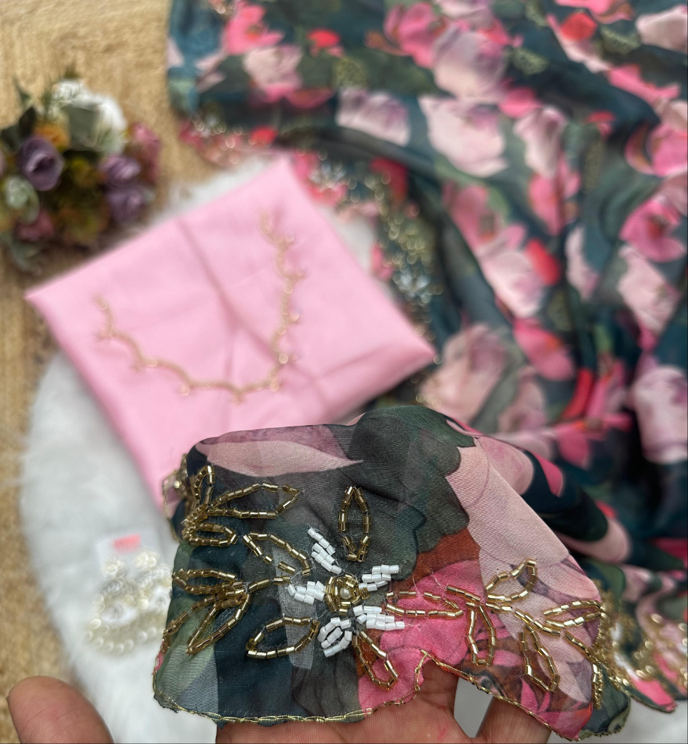Work:- beautiful val moti handwork border ……
