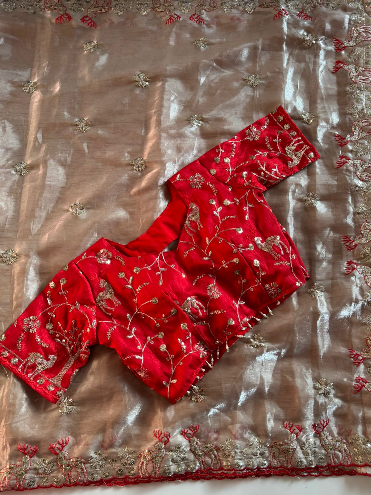 • Blouse Work: Rich embroidery