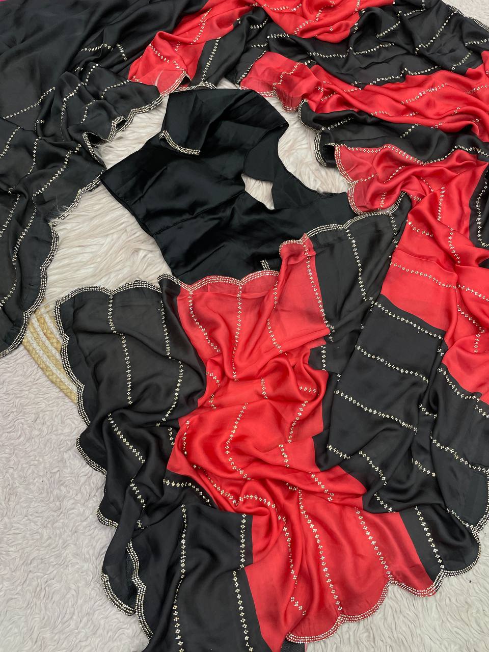 Soft satin with elegant print all over saree with jharkan done on border and all over the saree
