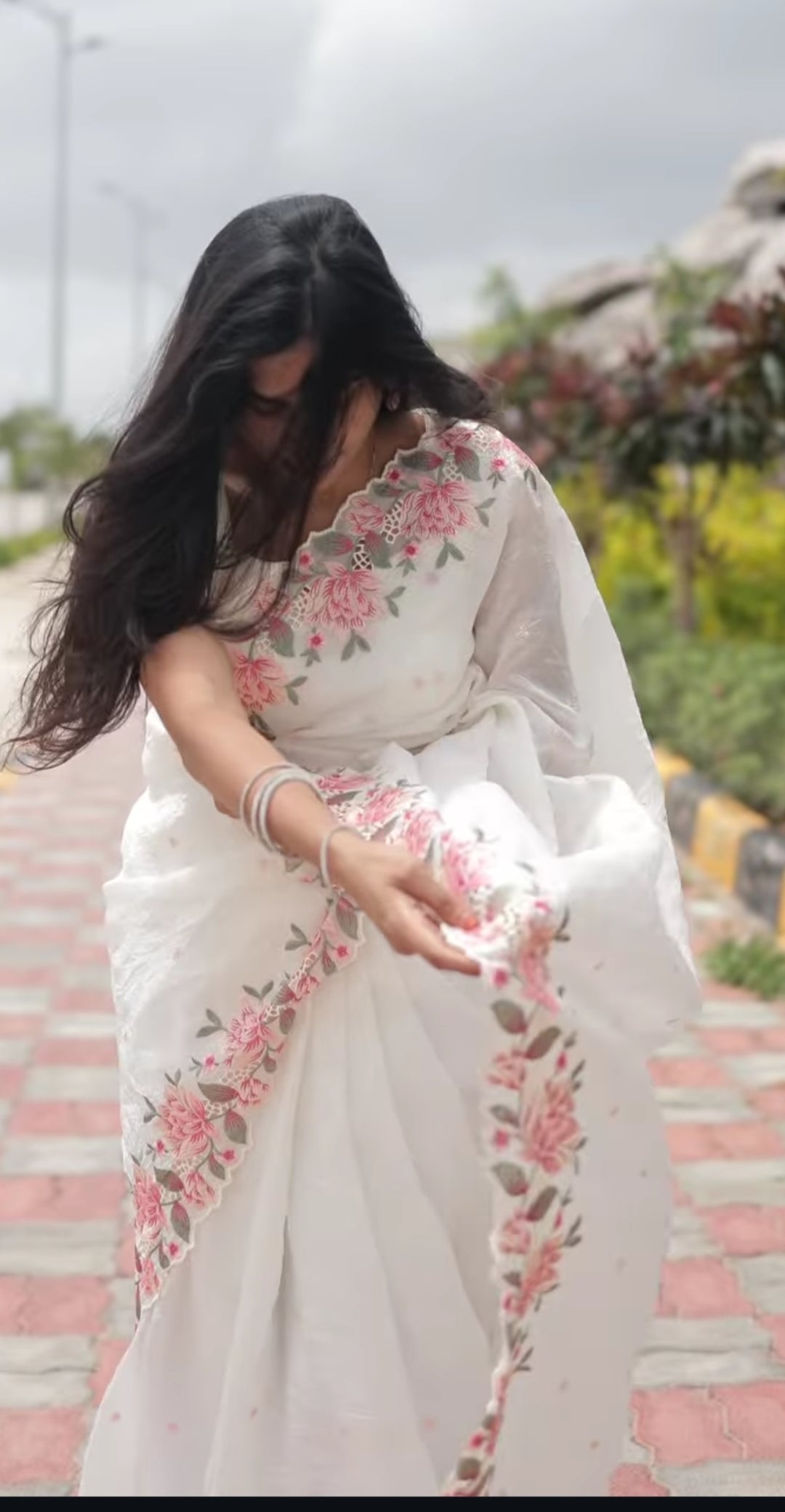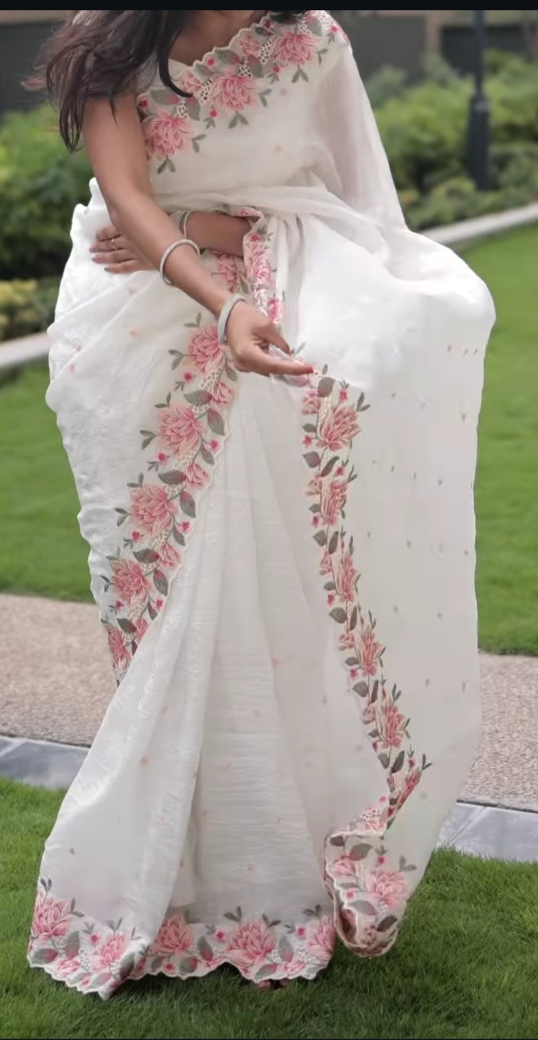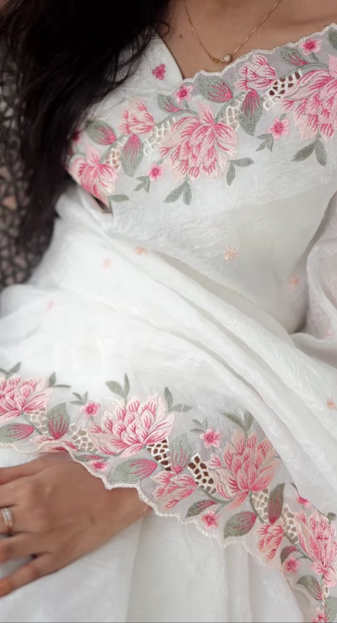 Heavy floral pattern saree with cut work all over the saree and pure silk crush saree with the cut work embroidered border