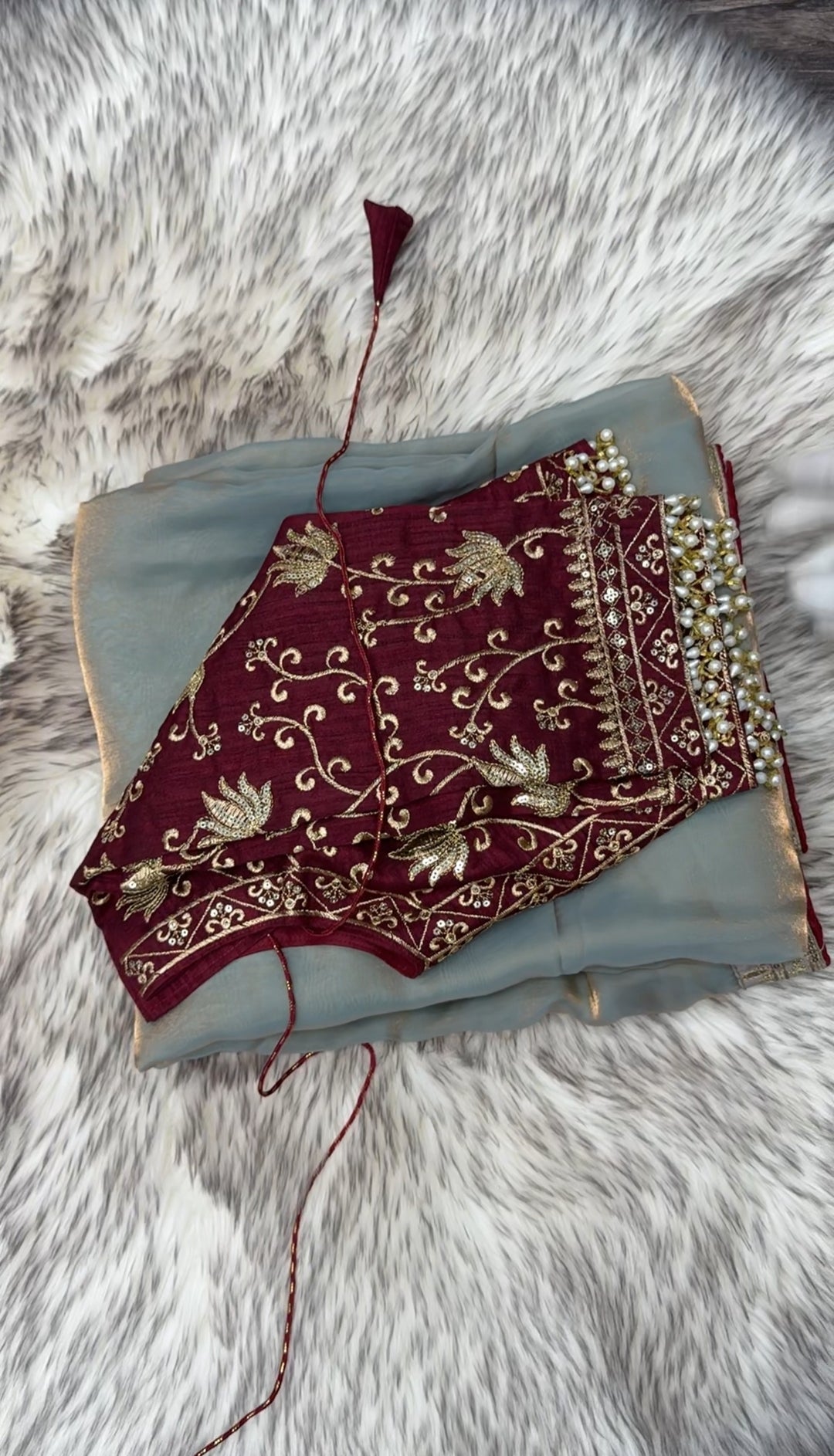 *Stitched blouse - heavy silk stitched blouse work in front with pearl lace all over the blouse and 42 max size*